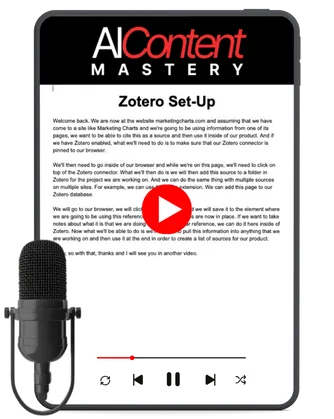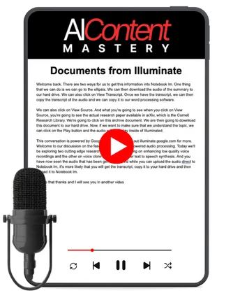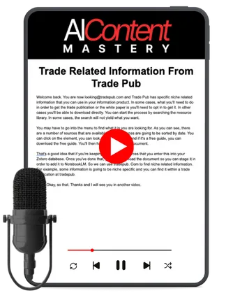 AI Content Mastery is a complete system that shows you how to create premium information products using AI research tools like NotebookLM, Google Scholar, and Zotero. You'll learn exactly how I build authority-based content empires, from systematic research to multi-format production. Everything is step-by-step, so you can copy my proven workflow.